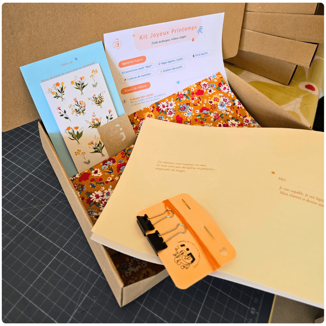 Tu lances ta vidéo, tu suis les étapes une par une et doucement, ton carnet prend forme entre tes mains.